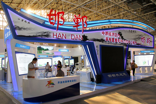 邯鄲館在眾多展館中,可謂“顏值”超高,無論場館建設(shè)還是展示內(nèi)容都極其豐富。邯鄲作為中華文明的重要發(fā)祥地之一,具有非常深遠的歷史。從邯鄲館外部可以看出,一言九鼎,完璧歸趙,都像在訴說邯鄲的歷史與文化。今年518洽談會,邯鄲主打“中原經(jīng)濟區(qū)內(nèi)具有重要影響力的中心城市”從多個方面令世界了解邯鄲,走進邯鄲。