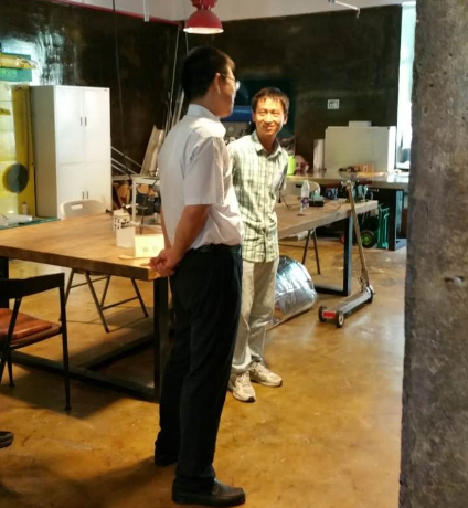 接下來(lái)參觀了“90后創(chuàng)客劉詠名”自主研發(fā)的極簡(jiǎn)電動(dòng)滑板車(chē),劉詠名向喬主任介紹了產(chǎn)品的優(yōu)勢(shì)并正在積極申請(qǐng)專利,同時(shí)表示自己在DCT創(chuàng)客空間內(nèi),享受到了很全面的孵化服務(wù),并對(duì)未來(lái)的發(fā)展非常憧憬。喬主任表示非常欣慰,同時(shí)也提出了中肯的意見(jiàn),希望劉詠名可以再接再厲,創(chuàng)造更高的輝煌。