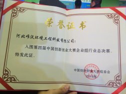 第四屆中國創新創業大賽新能源及節能環保行業總決賽在西安落下帷幕,邯鄲高科在孵企業河北唯沃環境工程科技有限公司以河北分賽區第二名參加了總決賽,晉級總決賽優秀獎,并獲得了現